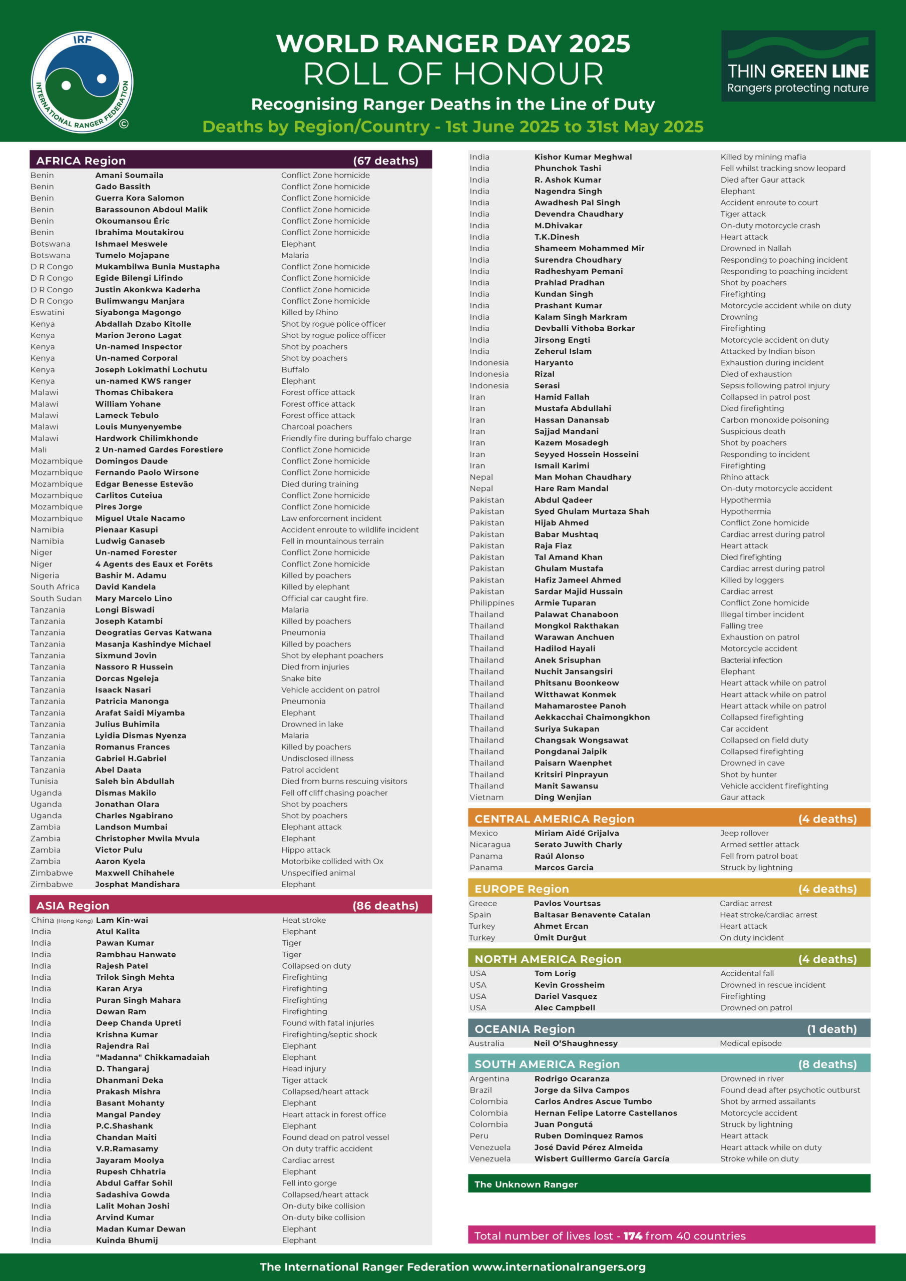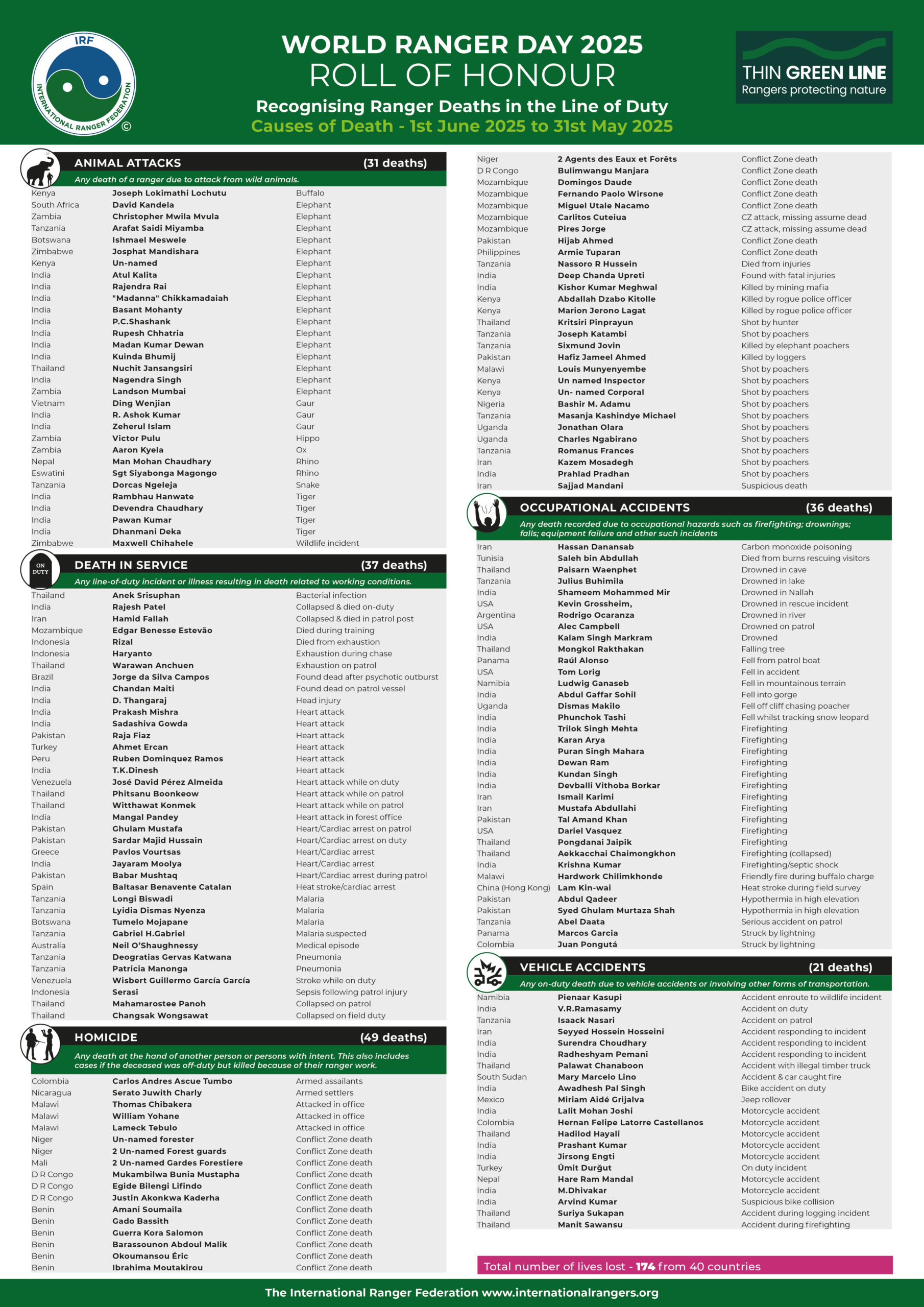 World Ranger Day is an International Ranger Federation (IRF) initiative, promoted alongside its charitable arm, The Thin Green Line Foundation (TGLF).